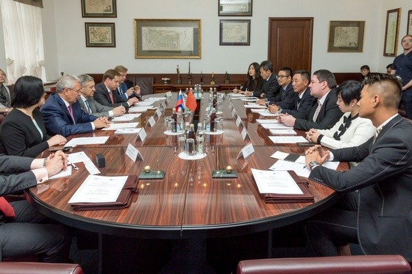 ↑ 会晤洽谈 (俄方出席人员由左至右依次为:俄罗斯国立再保险公司总裁尼古拉斯·加卢盛